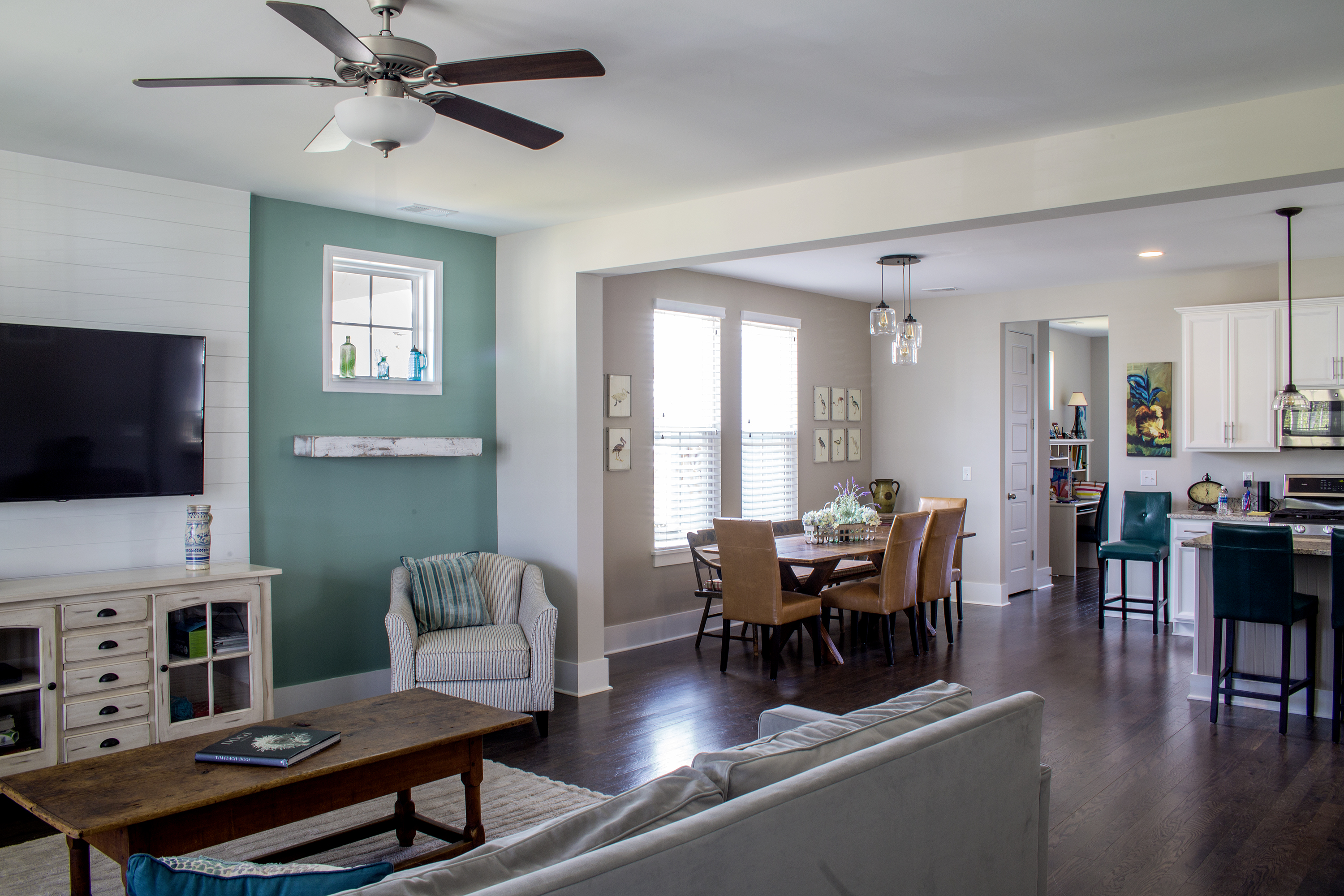 If you’re looking for ways to add texture to your space, never doubt the power of a ship lap wall, like this one painted in Alabaster White from Sherwin Williams. By the way, I absolutely love this paint color and it goes on beautifully for kitchen cabinets, crown molding or trim. Its also an attractive contrast against a dark accent wall such as Teal, Aero Blue or dark Blue/Gray. I also love to add an industrial touch to all my designs- here it is contributed in the kitchen lighting.