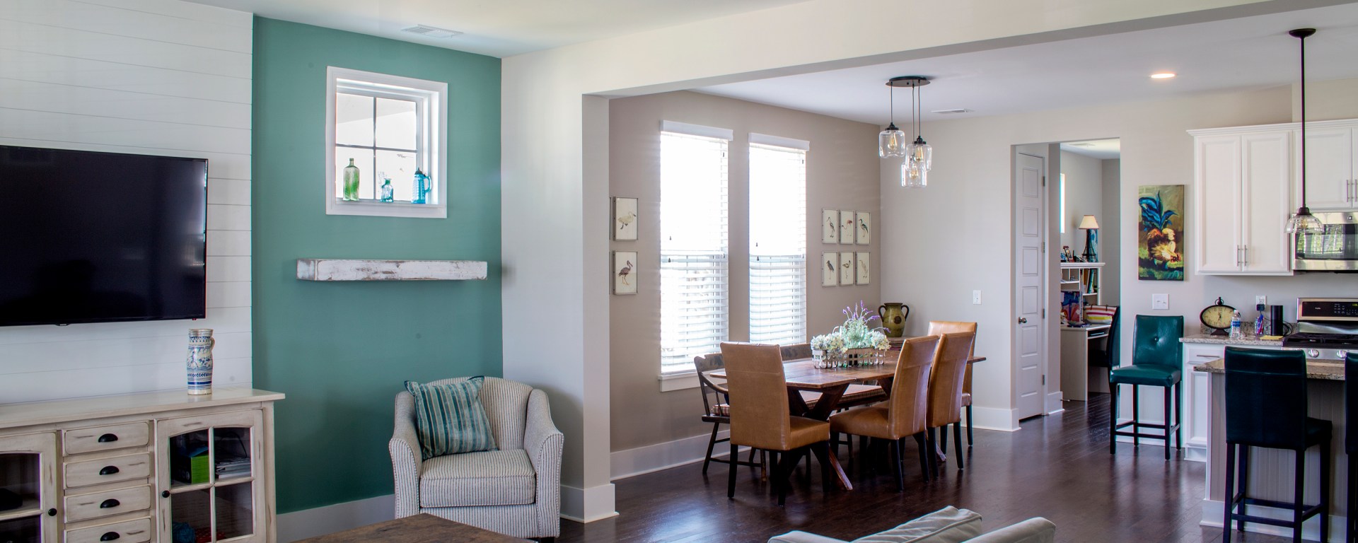 To add personality, we added the reclaimed wood floating shelf and vases in the window. She loves birds, so the nicely framed gallery wall in the kitchen above the dining table personalizes this common area.