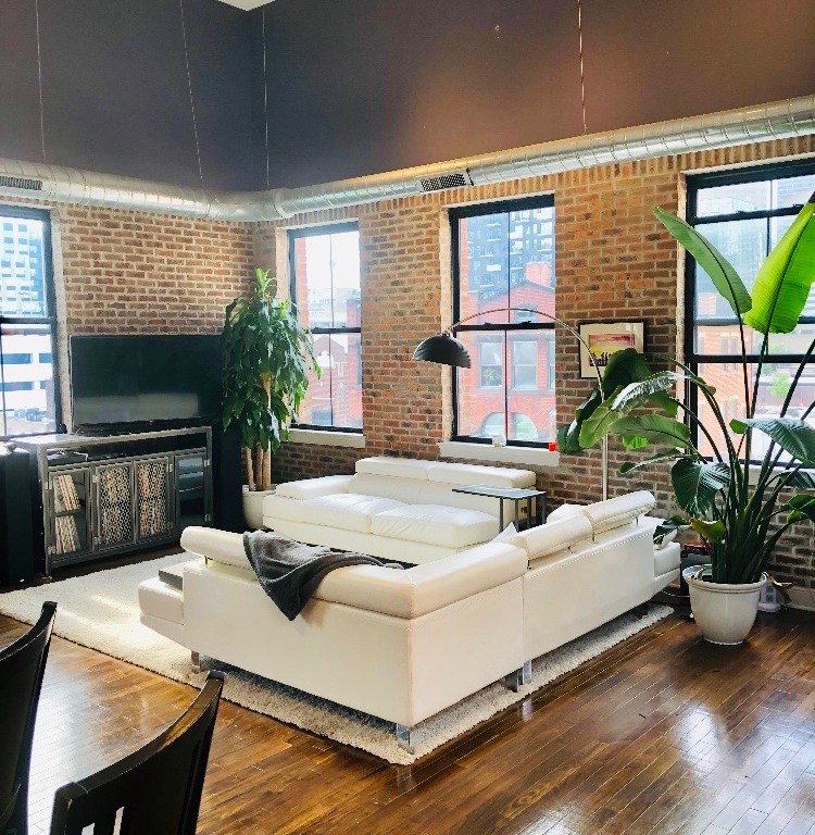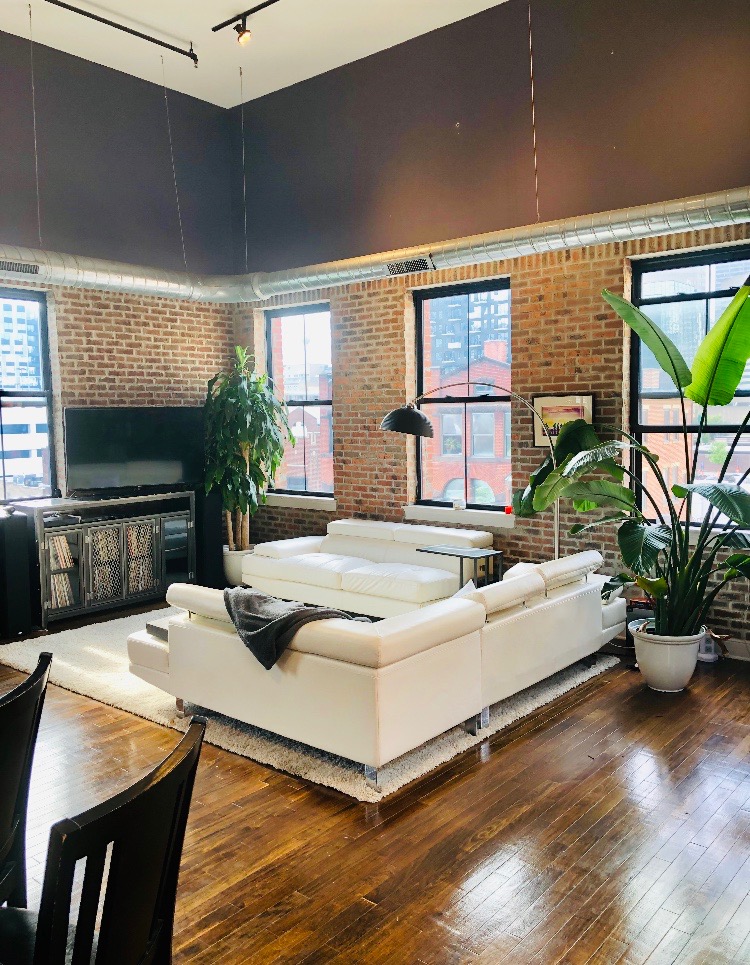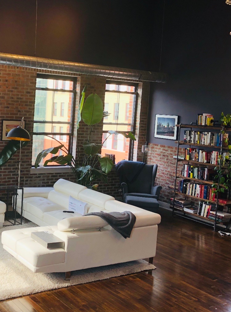 To complete the industrial loft look while adding elements of “cozy”-consider adding live plants, an overarching black lamp with a soft watt bulb, artwork, a soft rug and a cozy reading nook. Isn’t it time to put your feet up and enjoy a room that speaks life you?